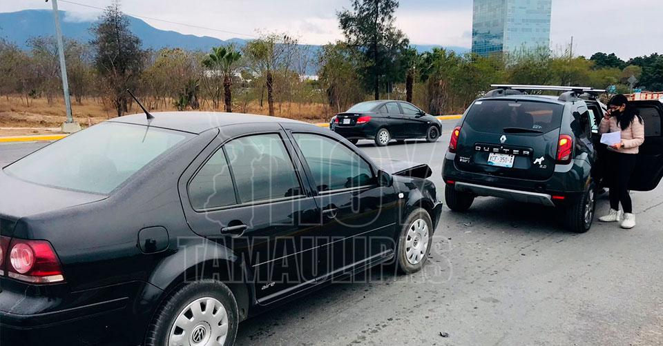 Los hechos se registraron cuando el conductor de un vehículo Jetta pretendía incorporarse a los carriles de sur a norte del Bulevar Fidel Velázquez, pero no observó que tenía una camioneta Duster al frente y se estrelló en la parte trasera.