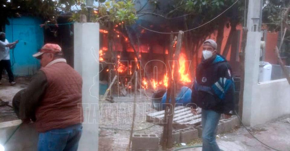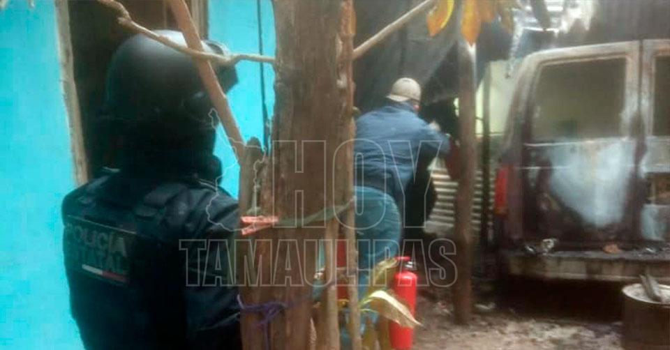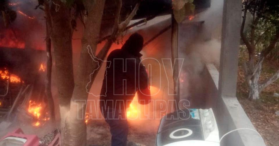 Xicoténcatl, Tamaulipas. - Una familia de escasos recursos perdió su patrimonio esta tarde, luego de que un incendio arrasó con su vivienda y una camioneta, en la colonia Linda Vista, al norte de Xicoténcatl, Tamaulipas.
