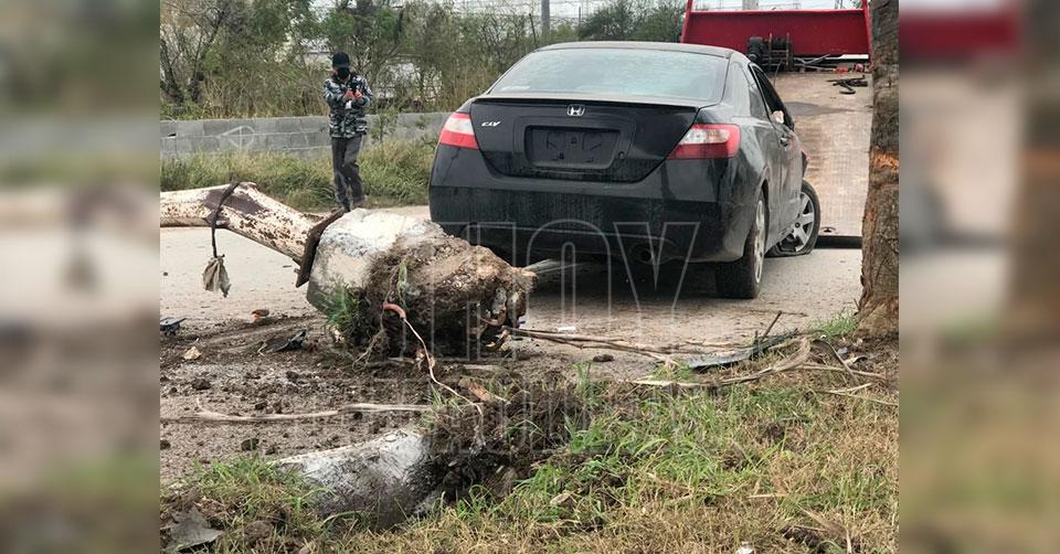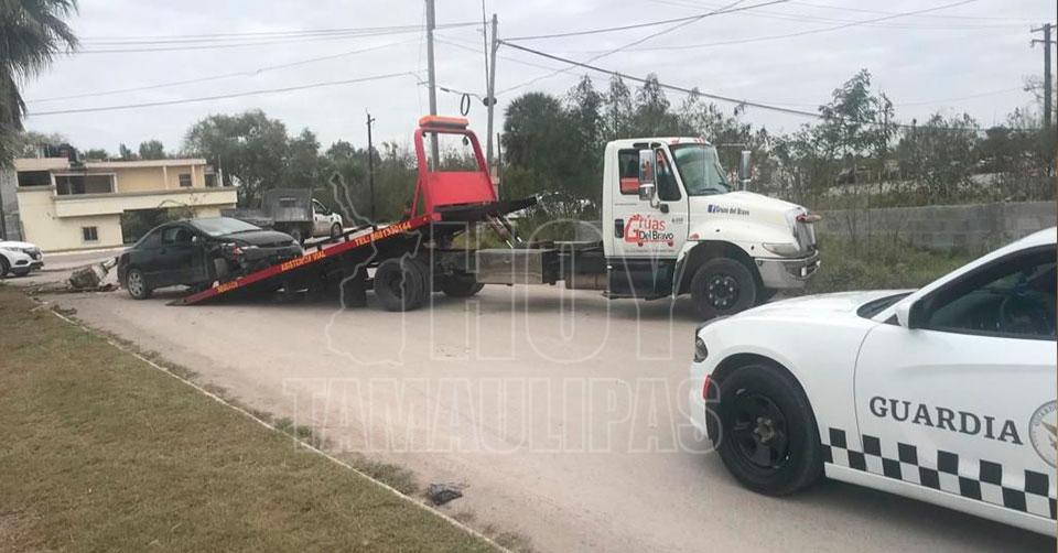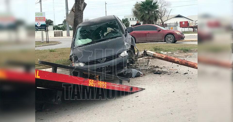 Matamoros, Tamaulipas.- Un vehículo de la marca Honda fue impactado contra palmas luego de que lo chocaron contra el poste de una lámpara.