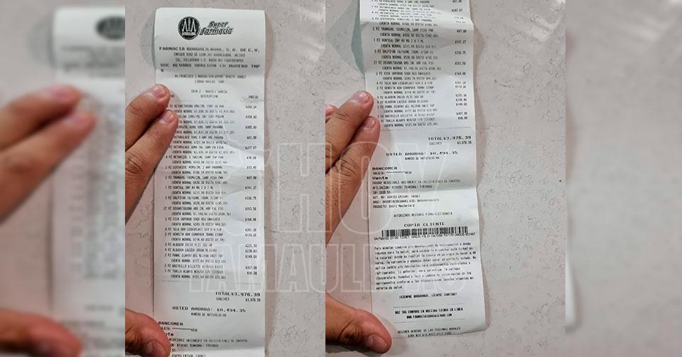 A través de fotografías muestra lo donado, así como dos tickets de una farmacia, el primero es por la cantidad de 3 mil 976 pesos y el segundo por 2 mil 931 pesos; todo en medicamentos y equipo para la benemérita institución.