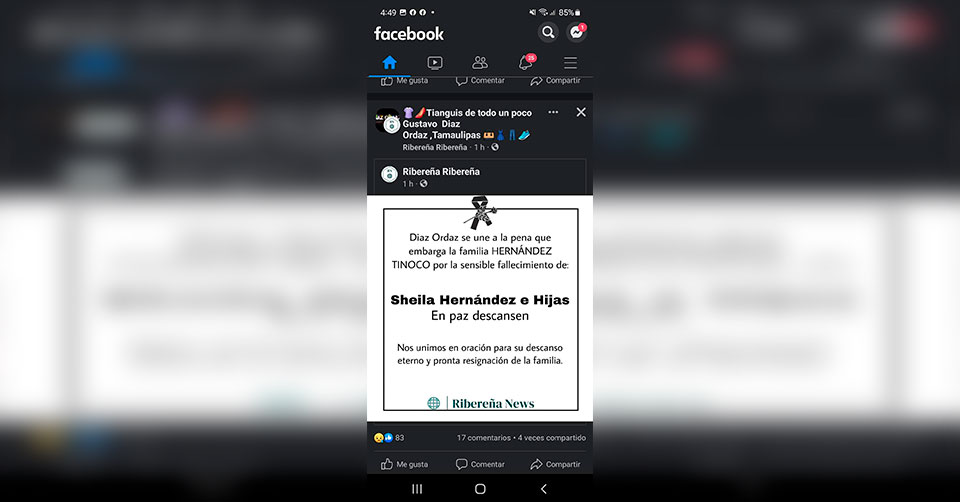 Reynosa, Tamaulipas.- Infinidad de expresiones de dolor y solidaridad se han publicado en redes sociales a raíz del fallecimiento de una familia en el accidente suscitado hoy en la carretera Ribereña, donde murieron integrantes de una familia.