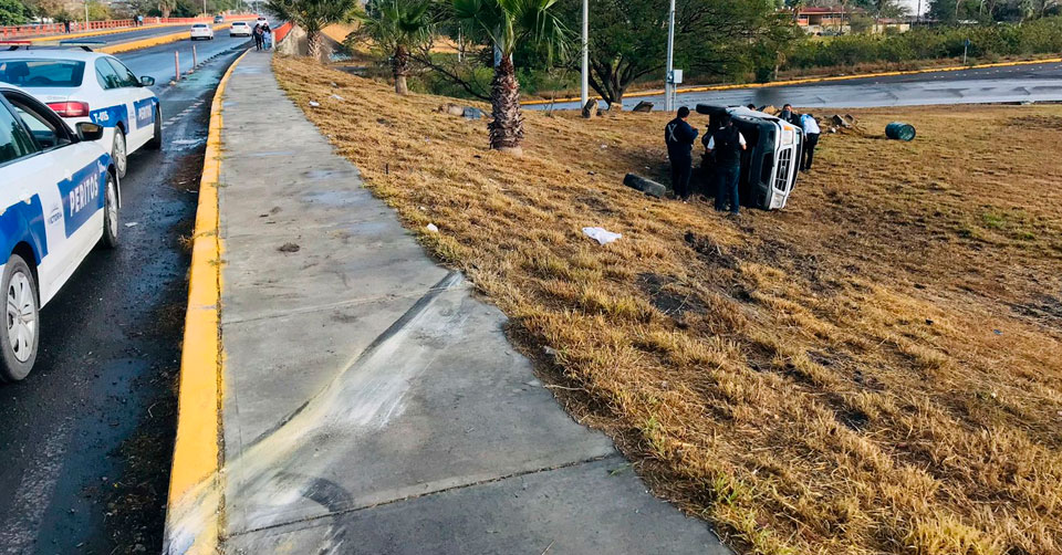 Presuntamente el exceso de velocidad hizo que el conductor perdiera el control del volante y tras golpear el cordón de una banqueta, comenzó a dar volteretas hasta quedar volcado.