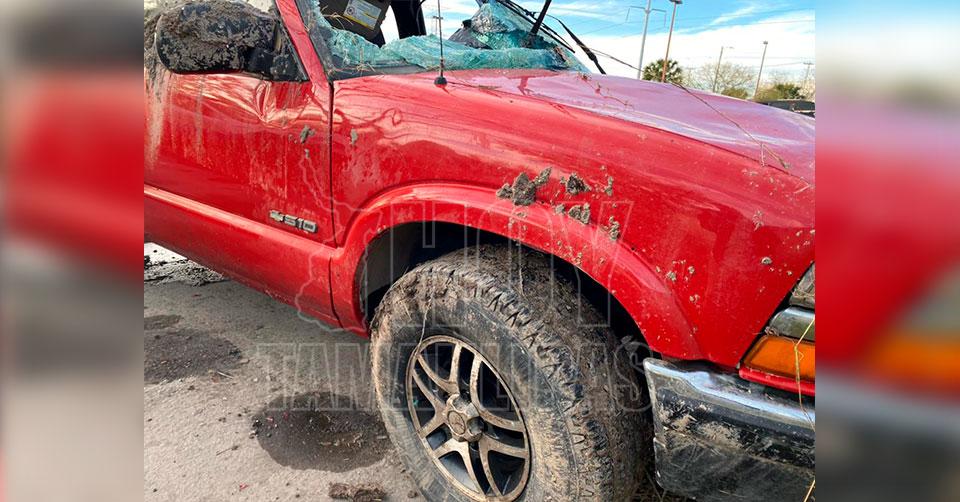 En el interior del canal hallaron una camioneta Chevrolet, S10, roja con placas de Texas, y del lado del conductor estaba una persona sin vida.