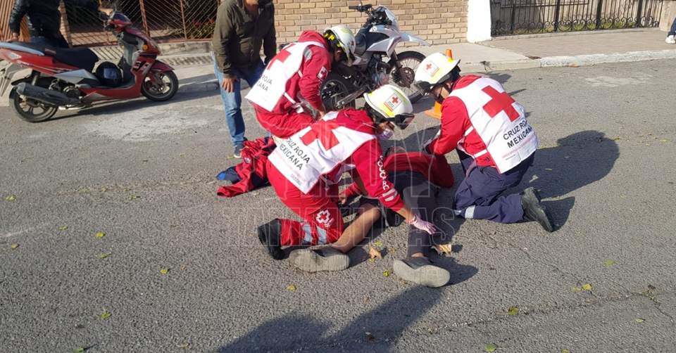 Al salir proyectado el joven motociclista resultó con una lesión en su brazo y pierna derecha por lo que acudió la unidad 304 de la Cruz Roja Mexicana para llevarlo a un hospital.