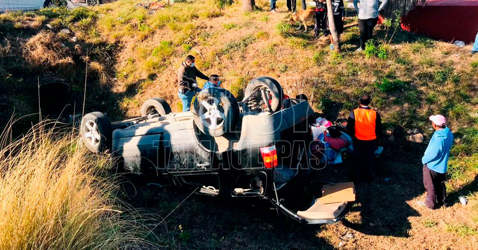 Volcadura deja una mujer lesionada en libramiento de Victoria