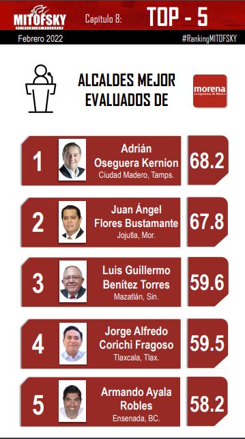 Además, con dichos porcentajes fue posicionado en el número uno, como el mejor alcalde de Movimiento de Regeneración Nacional (Morena) en todo el país.