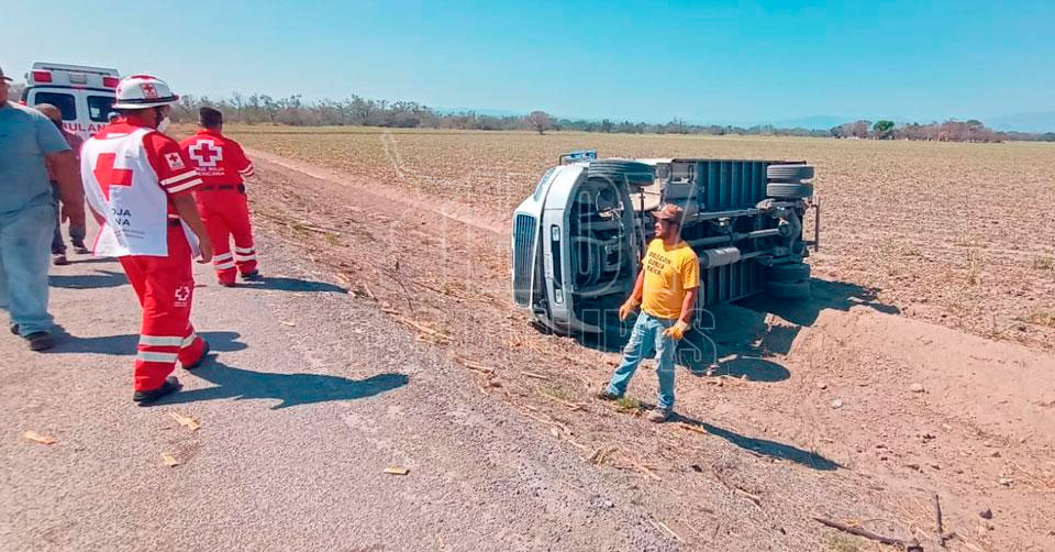 El Mante, Tamaulipas. – Un camión de carga volcó este mediodía en el kilómetro 117 de la carretera El Limón-Xicoténcatl, dejando como saldo al chofer lesionado y cuantiosos daños materiales.
