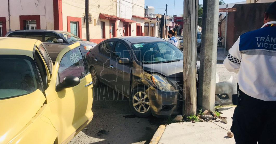 Ciudad Victoria, Tamaulipas.- El conductor de un vehículo que tenía tres años sin moverlo, provocó un fuerte accidente vial esta tarde, en el 18 Matamoros Zona Centro de Ciudad Victoria.