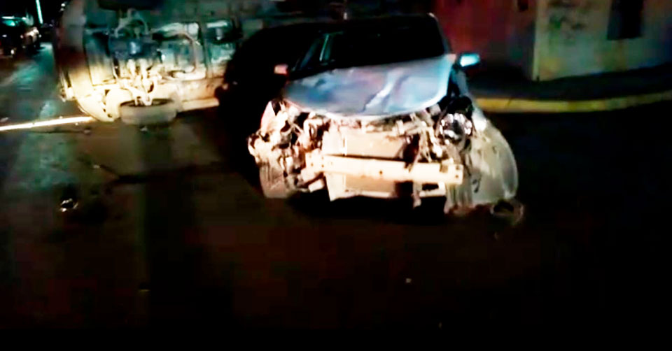 El accidente se registró cuando la patrulla era conducida en dirección sur norte por la calle Felipe Ángeles, al llegar al cruce con la calla Pamoranes el conductor omitió el alto correspondiente y sobrevino la colisión con el Nissan Versa.