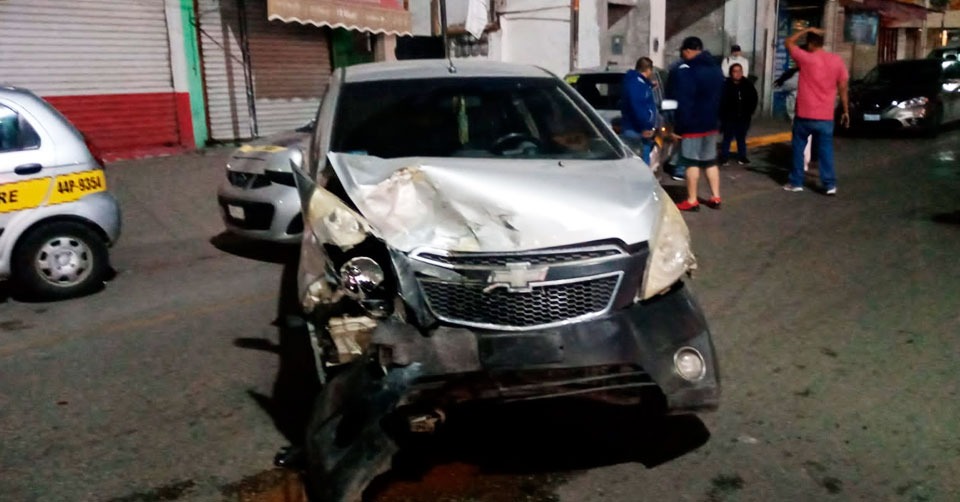 Este vehículo se impactó primeramente en un taxi de la marca Dodge i10 en el que el conductor de nombre Rubén Aguilar, resultando con diversos golpes pues se encontraba en espera de pasaje.