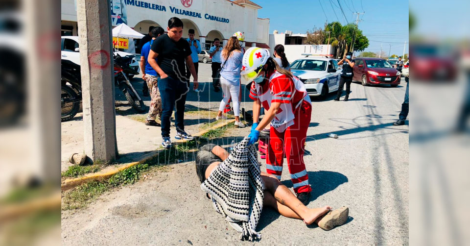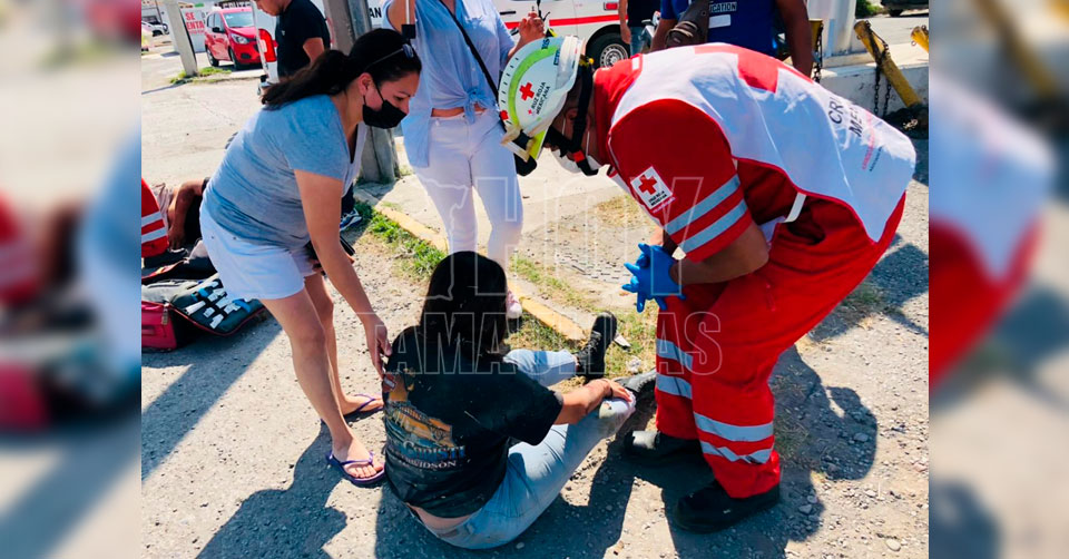 Al sitio acudieron paramédicos a bordo de una ambulancia de la Cruz Roja Mexicana para auxiliar a la pareja y trasladarla al Hospital General tras caer de la motocicleta.