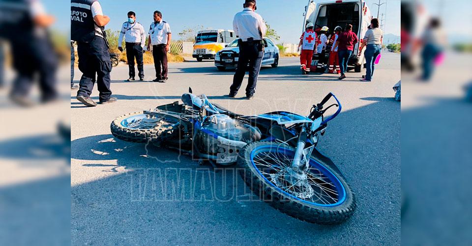 Los hechos se registraron en el parque industrial a la entrada de la maquiladora Aptiv y Springs Windows Fashion cuando el motociclista se desplazaba de oriente a poniente y a la altura de la entrada a la maquiladora se estrelló detrás del microbús.