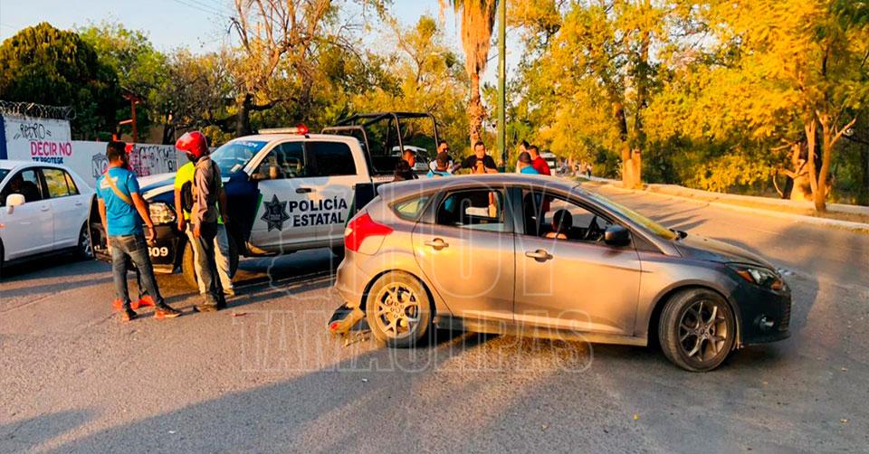 Por dar vuelta prohibida se estrella motociclista en Ciudad Victoria