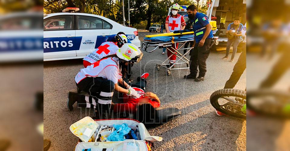 Ciudad Victoria, Tamaulipas.- Un joven que circulaba en su motocicleta resultó lesionado luego de impactarse contra un vehículo que presuntamente dio una vuelta prohibida en el Boulevard Praxedis Balboa.
