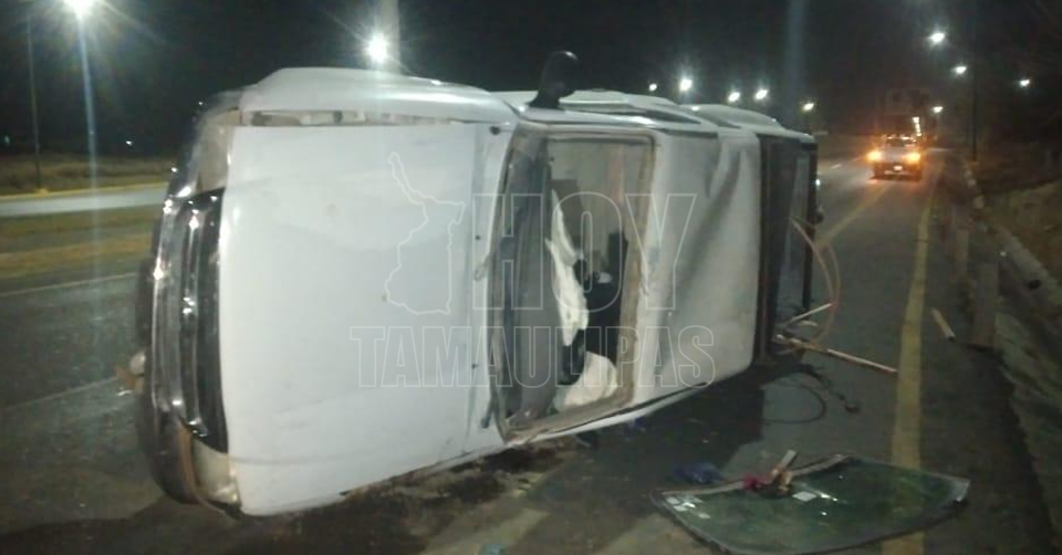 Nuevo Laredo, Tamaulipas.- Un conductor estuvo a punto de irse al fondo del arroyo El Coyote, en Nuevo Laredo, después de que volcara en su camioneta, tras chocar contra la punta de un puente con barandal de contención en el Bulevar Colosio.