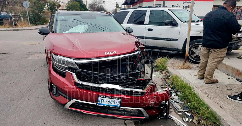 Nuevo Laredo, Tamaulipas.- Un accidente vial entre los conductores de dos camionetas dejó como saldo daños materiales solamente, informó Tránsito Municipal.