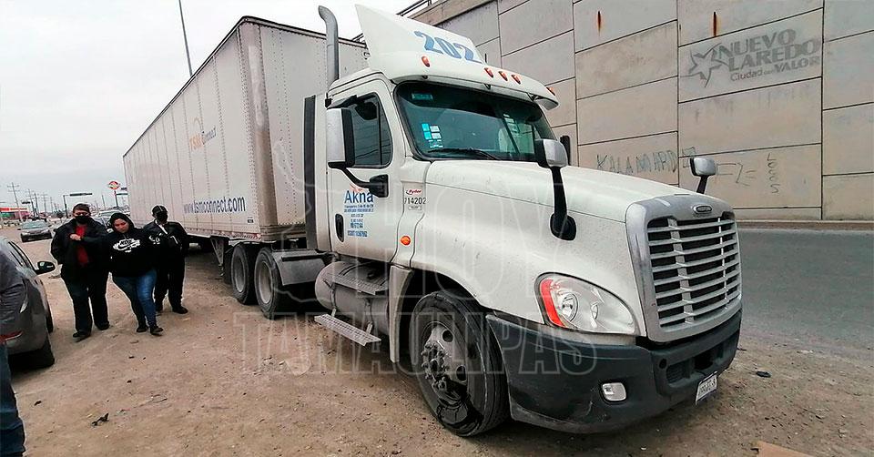 Choque entre tráiler y auto compacto deja sólo daños en Nuevo Laredo