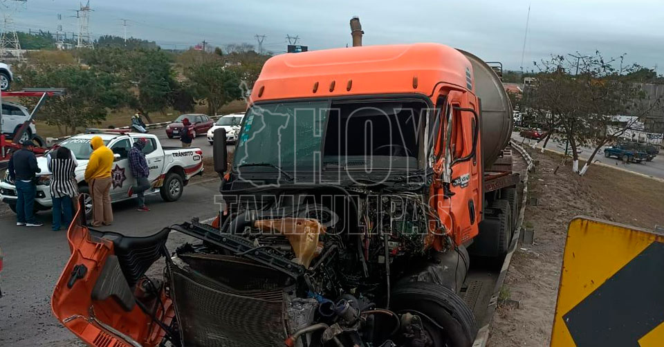 El tráiler pipa de la marca Freightliner color naranja propiedad de Petro Asfalto era conducido de sur a norte y al subir al puente se salió de la vialidad y brincó al carril contrario, impactando al camión que procedía del puerto de Altamira.
