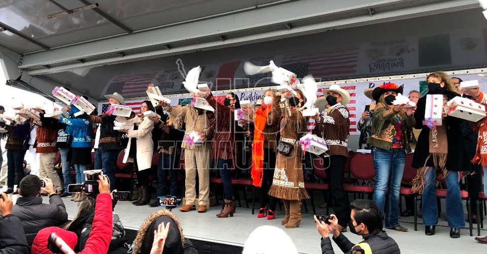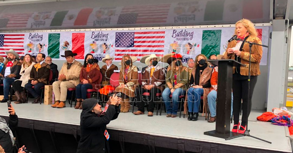 Matamoros, Tamaulipas- Después de un año sin la salutación entre las autoridades de Brownsville, Texas y Matamoros, este día con una temperatura de 6 grados y una sensación térmica de 3, no fue impedimento para reactivar el tradicional saludo binacional de las Fiestas Mexicanas y Charro Days.