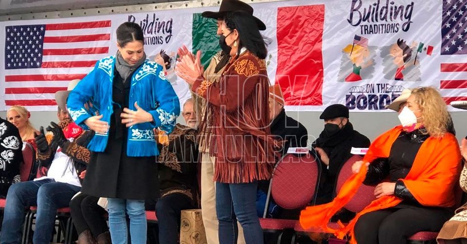 Las invitadas de ambos lados de la frontera fueron reconocidas con la entrega de una cuera tamaulipeca, que identifica a estas Fiestas Mexicanas y Charro Days.
