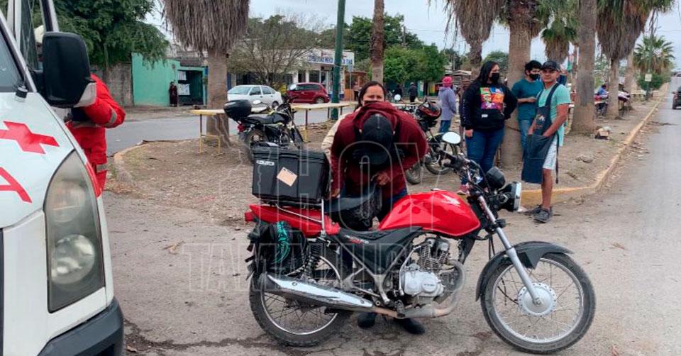 Ciudad Victoria, Tamaulipas.- Un motociclista resultó lesionado luego de estrellarse contra un camión que salía de una frutería en Ciudad Victoria.