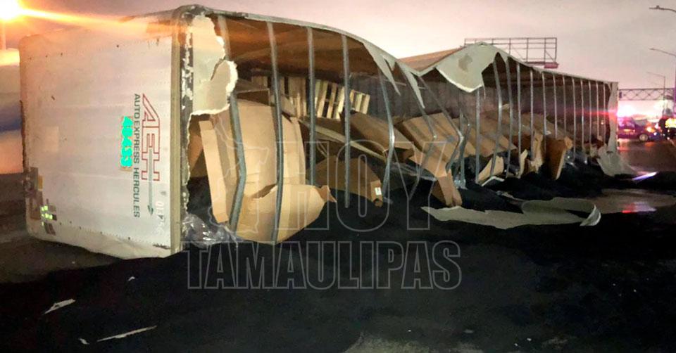 Sobrevive trailero a volcadura en Nuevo Laredo
