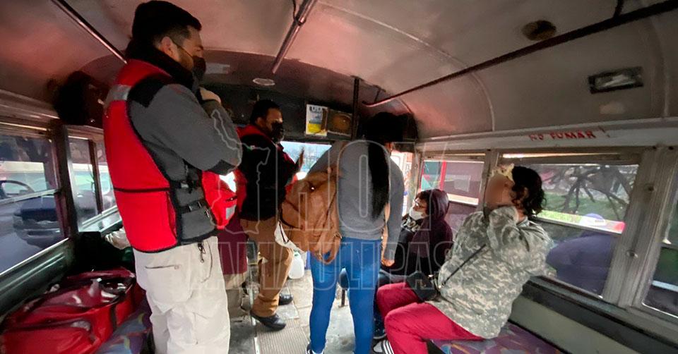 Los lesionados que iban en el transporte fueron apoyados por paramédicos de Protección Civil, y dos fueron trasladados a una institución médica para otorgarles los servicios médicos.