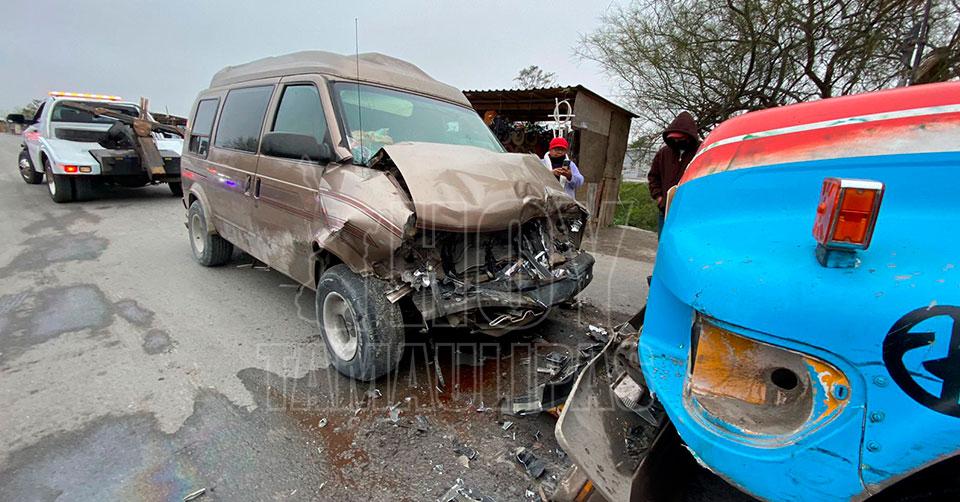 Cuatro heridos dejó choque entre microbús y camioneta en Matamoros