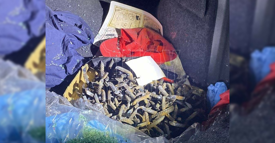 En el lugar las autoridades aseguraron un rifle de asalto, además de cartuchos y cargadores y una caja con artefactos metálicos de los llamados poncha llantas.