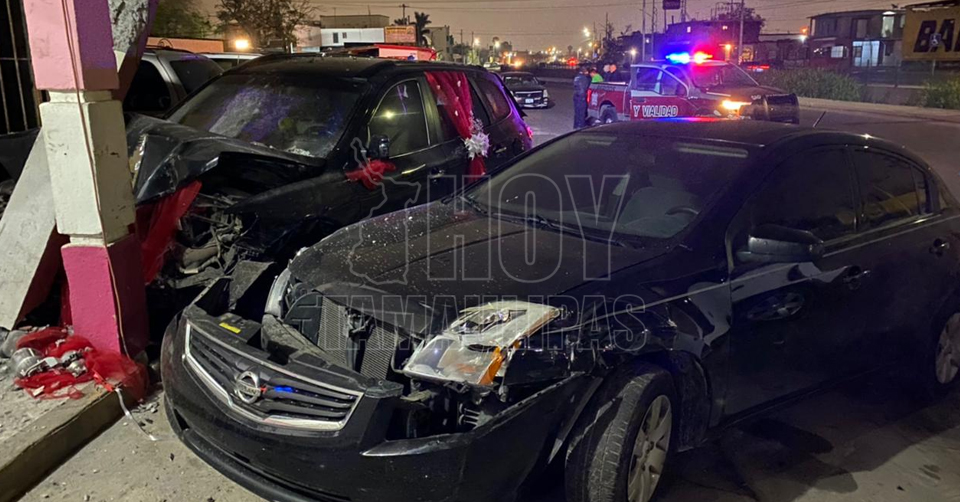 Matamoros, Tamaulipas. - Un alcoholizado sujeto perdió el control de su auto y se estrelló contra varios vehículos estacionados afuera de un salón de eventos ubicado en el libramiento Emilio Portes Gil.