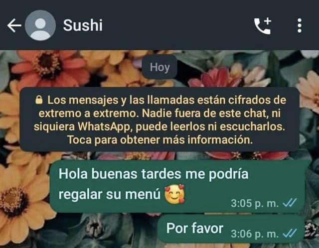 “Hola buenas tardes. Me podrías enviar el menú”, fue lo que escribió la clienta en el chat de la empresa de comida y añadió un emoji con un corazón.