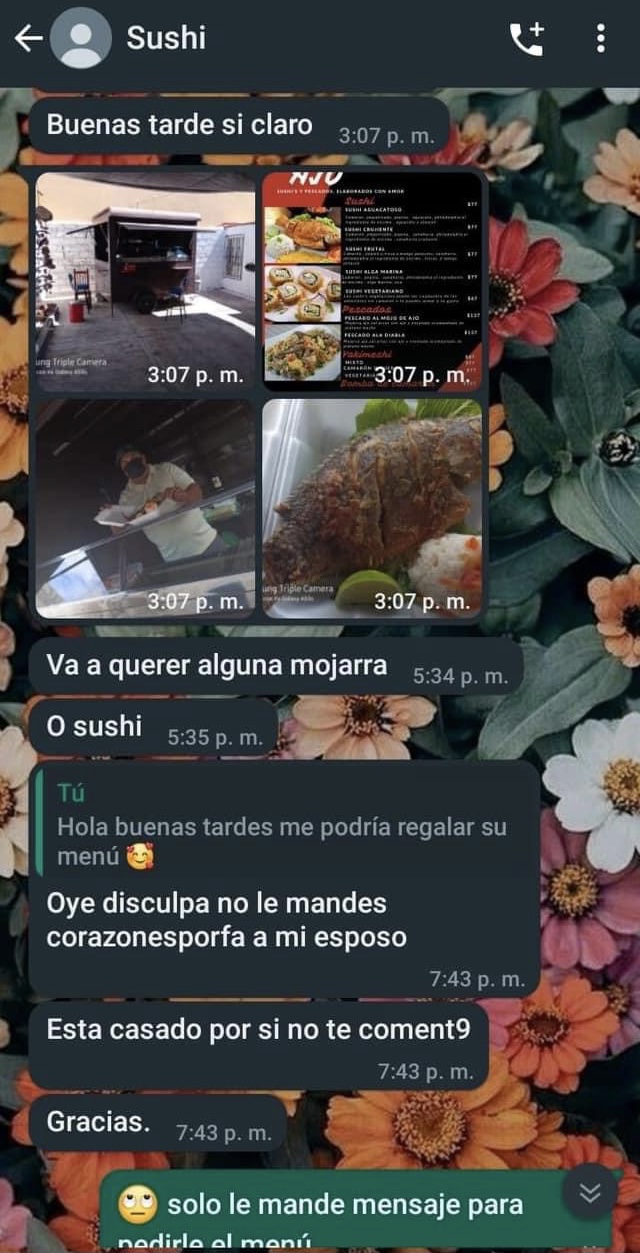 Pachuca.- Una clienta se llevó una desagradable experiencia al pedir el menú de un local de sushi, pues la supuesta esposa del dueño le reclamó por enviar emojis “de amor”.