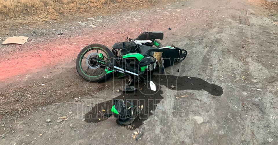 Al momento del percance vial, la motocicleta salió proyectada cerca de 15 metros al igual que el joven, mismo que resultó con fractura de tobillo expuesta.