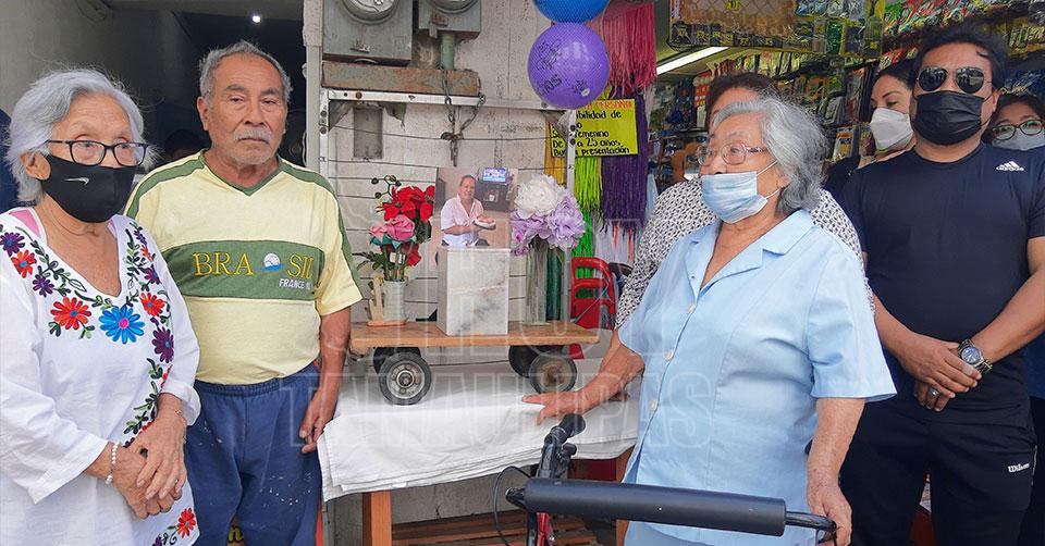En el sitio donde tanto tiempo laboró, más de 30 años, fue colocada la urna que contenía las cenizas de "Cachito", una fotografía, un pequeño carrito tipo avalancha que usaba para trasladarse, pues era discapacitado de nacimiento, y dos arreglos florales.