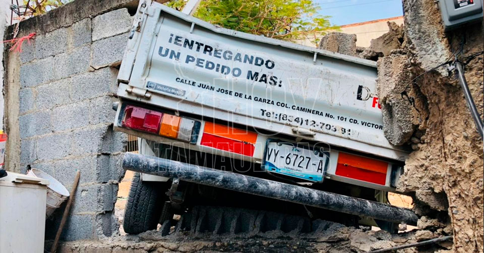Ciudad Victoria, Tamaulipas.- Una camioneta atravesó la barda de un domicilio luego de que se le “botara” el cambio en la Colonia Estudiantil de Ciudad Victoria.