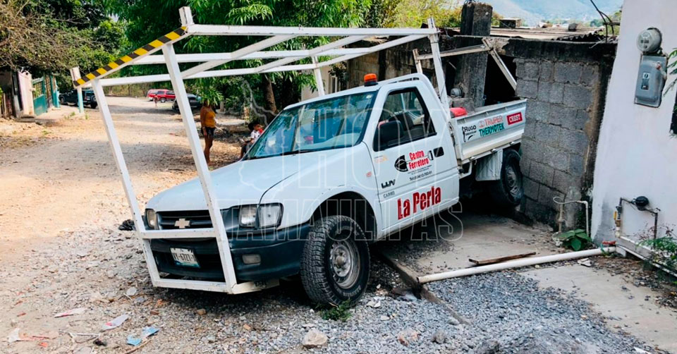 Al momento de avanzar la camioneta Chevrolet, habilitada con caja para material de construcción, se estrelló contra la barda de una casa donde una mujer tendía ropa recién lavada.