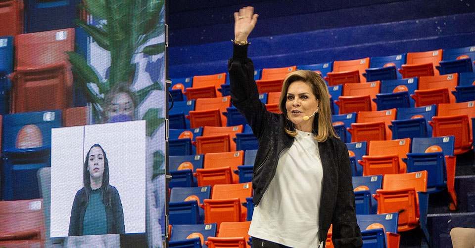 Ante cientos de alumnas, académicas, funcionarias y trabajadoras de la Universidad, reunidas en el Gimnasio Multidisciplinario del Campus Victoria, el C. P. Guillermo Mendoza Cavazos, Rector de la UAT, dio la bienvenida a la expositora y expresó su reconocimiento a las universitarias por la entrega, pasión y fuerza que inyectan en su vida personal y laboral.