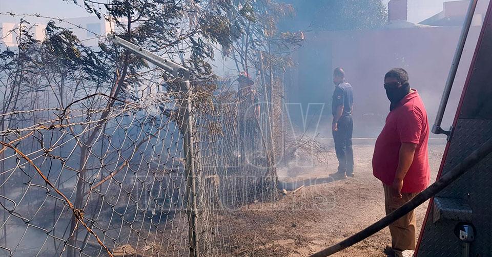 Rápidamente los "tragafuego" sofocaron el incendio acompañados de Protección Civil Estatal para evitar que el humo se propagara en ese sector.