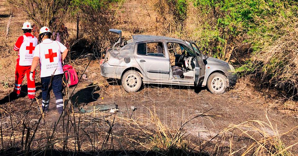 Al salir del camino, el vehículo volteó y quedó con llantas hacia arriba, por lo que no podían salir.