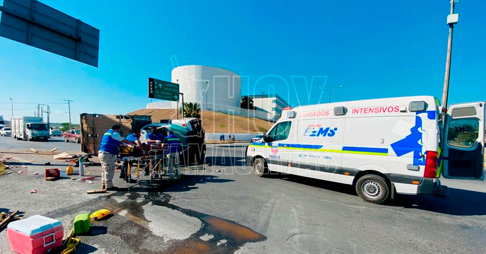 Ciudad Victoria, Tamaulipas. – El tripulante de un camión maderero resultó gravemente lesionado luego de que la pesada unidad fuera impactada por una camioneta, lo que provocó que volcara en el Libramiento Naciones Unidas y prolongación del Boulevard Praxedis Balboa, frente al Congreso del Estado en Ciudad Victoria.