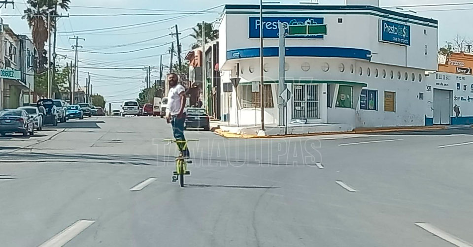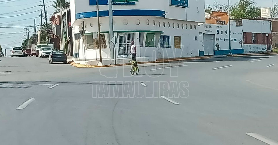 Fue este jueves cuando se pudo observar a un hombre, de mediana edad, circulando por el Boulevard Morelos montado en su bicicleta, pero no de la manera tradicional.
