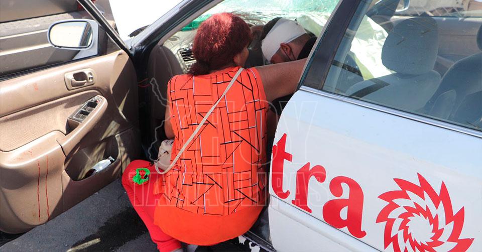 Tras el fuerte encontronazo, el taxista se impactó contra el parabrisas, quedando bañando en sangre, por lo que fue necesario la presencia de los paramédicos de Protección Civil para que lo auxiliaran.