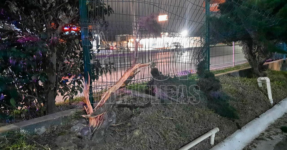 Debido al accidente también se dañó una cerca metálica del hotel y plantas, además de un señalamiento.