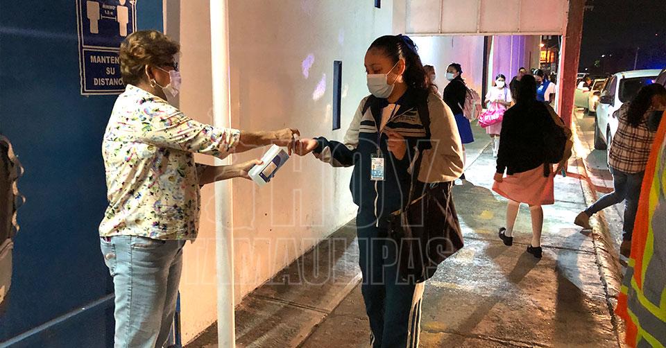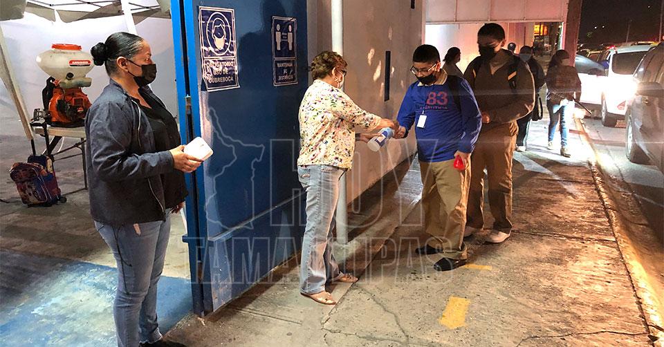 Cumpliendo con los protocolos de salud, como lo es la toma de temperatura, la aplicación de gel antibacterial y que todos los alumnos cuenten con su mascarilla, fue la manera en que regresaron los estudiantes a sus escuelas.