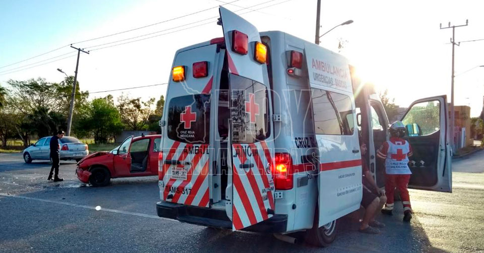 Paramédicos de la Cruz Roja brindaron la atención prehospitalaria a los conductores de un vehículo Chevrolet Chevy rojo y un Chevy Monza gris.