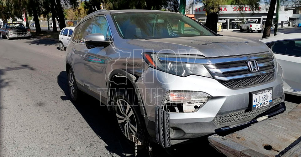 Paramédicos de la Cruz Roja le brindaron la atención pre hospitalaria, ya que aparte del susto resultó con golpes leves al estallar una bolsa de aire al interior de su flamante unidad Honda Pilot.