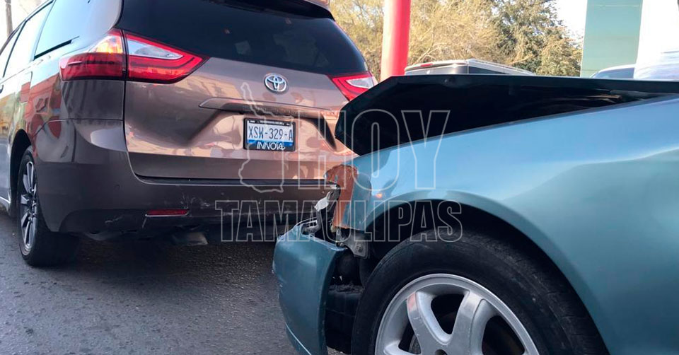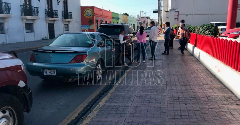 Matamoros, Tamaulipas.- Un choque por alcance de un auto contra una camioneta se registró este martes en la calle Sexta, entre González y Morelos, frente a la Presidencia Municipal.