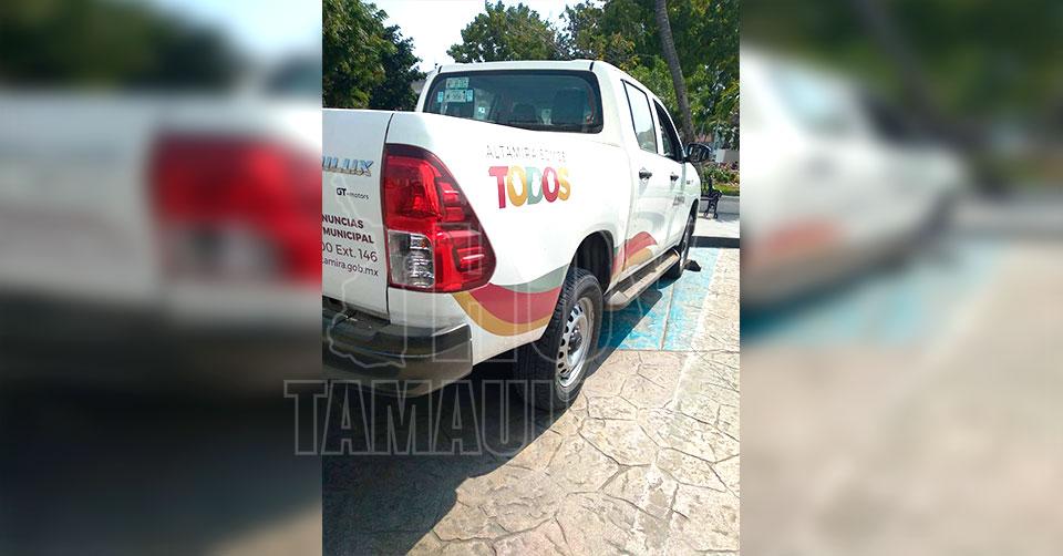La camioneta traía todos los logos oficiales del gobierno que dice "Altamira Somos Todos".