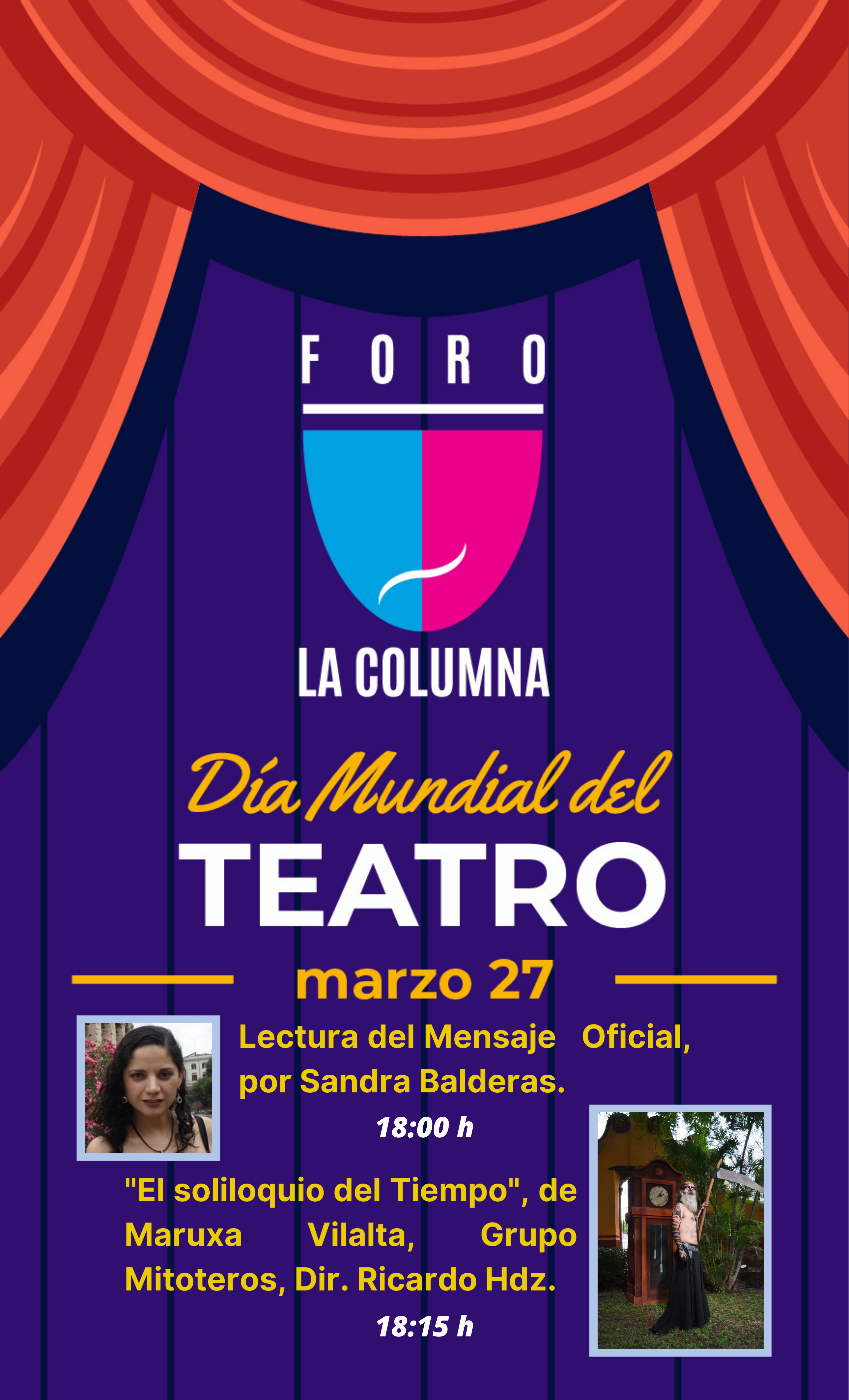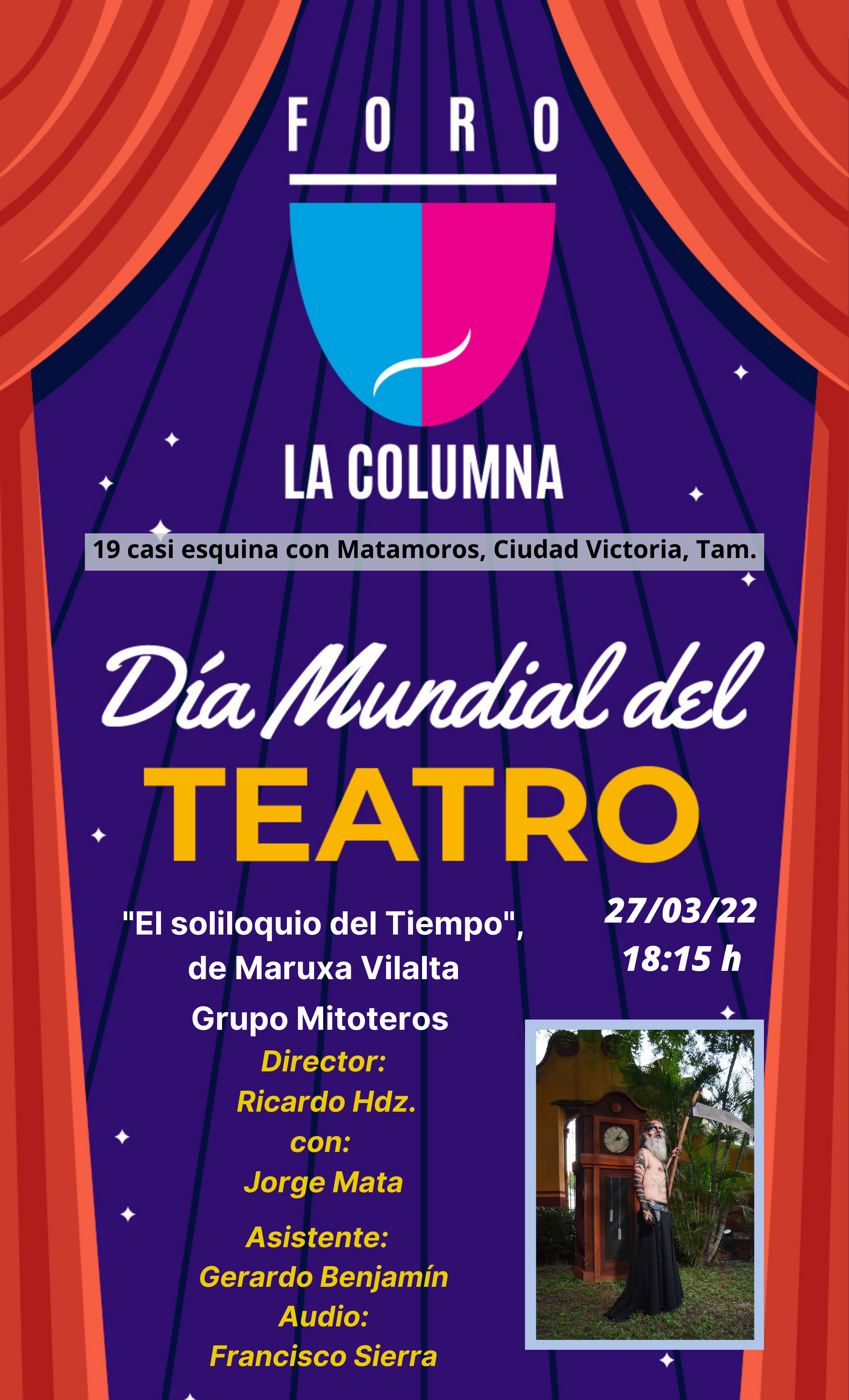 Ciudad Victoria, Tamaulipas. - Con música y actuación, el Foro la Columna en Ciudad Victoria conmemora el fin de semana el Día Mundial del Teatro, que al igual que en todos los países del orbe se realiza con el fin de fomentar el disfrute de las artes escénicas para todos y todas.