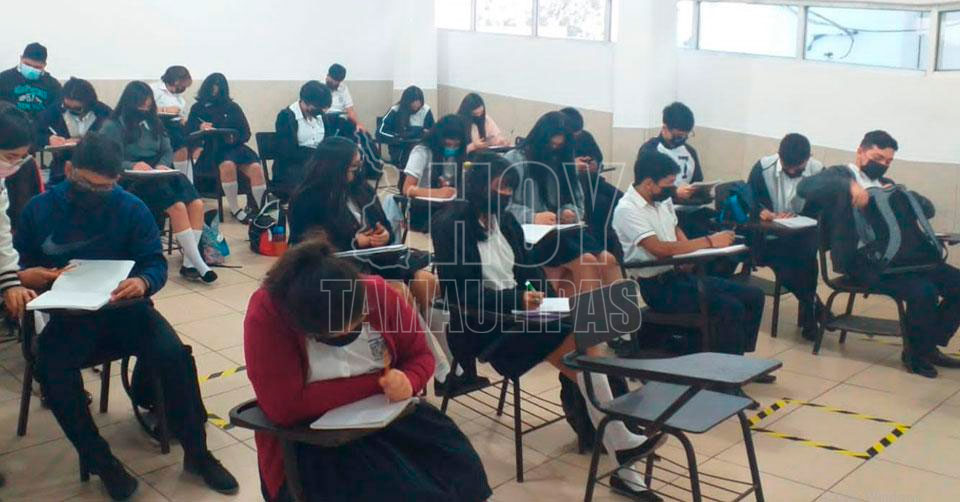 Matamoros, Tamaulipas. - Luego de que la Secretaría de Educación en Tamaulipas (SET) autorizara un cupo presencial hasta del 100 por ciento en las escuelas tamaulipecas, la Preparatoria Federal y por Cooperación "Lic. y Gral. Juan José de la Garza" éste miércoles trabajó con una población estudiantil cercana al 80 por ciento y se presume que en el transcurso de la presente semana se sumen más estudiantes para las clases presenciales.